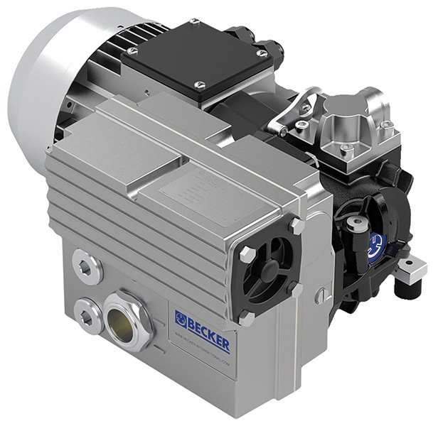 Роторно-пластинчасті маслозаповнені насоси Becker мають просту та надійну конструкцію: високоякісний вал і прямий привід гарантують надійність і довгий термін служби насоса при малих витратах на обслуговування і експлуатацію. Окремі робочі камери маслозаповнених насосів Becker розділяють пластикові/графітові пластини, в робочу камери подається вакуумне масло, яке ущільнює зазори тим самим забезпечуючи збільшення глибини вакууму. Впускний фільтр і регулюючий вентиль вбудовані в насос. Система охолодження стисненого повітря забезпечує низьку температуру на виході, а сучасний компактний кожух зменшує шум від роботи і теплове випромінювання.